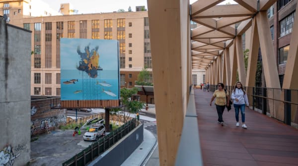 Kicking Off Climate Week, Painter Jessie Homer French Inaugurates New High Line – Moynihan Connector Billboard With TwoCity Life Org, September 19, 2023